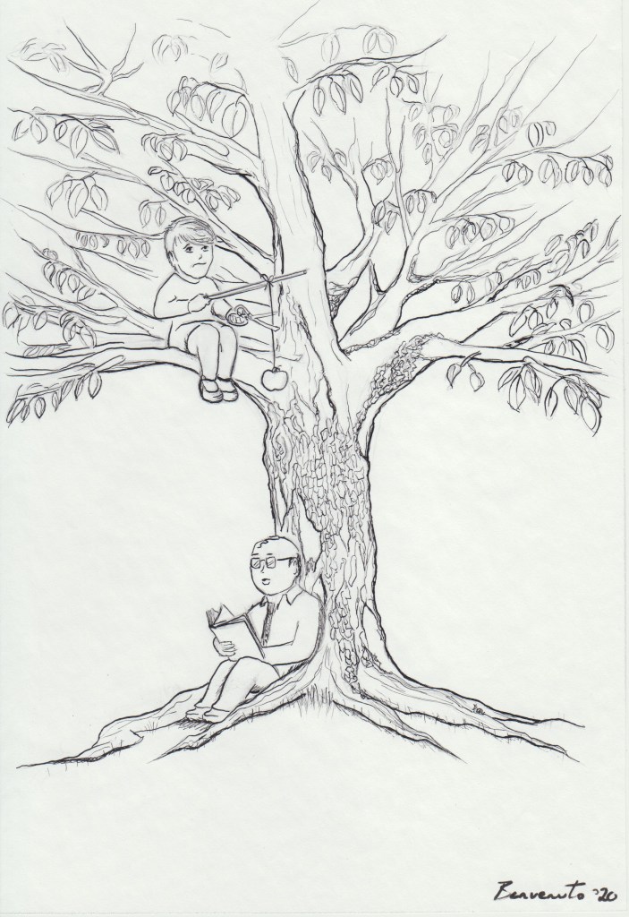 This is a drawing using India ink and a cheap little nib I happened to find by accident. It’s definitely worth the extra work. The lines seem sharper, and when I erased some of the pencil it didn’t smudge. Ink and nib it is!!! I’m too chicken to try marker on the original so I’ll be using some copies to add colours either with marker or by stealing my kids’ crayons. Dialogue bubble be damned (for now).